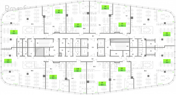 На сегодняшний день бизнес-центр распродан более чем на 70%, но в наличии есть имиджевые офисы нового поколения от 79 м² до возможности приобрести целый этаж.