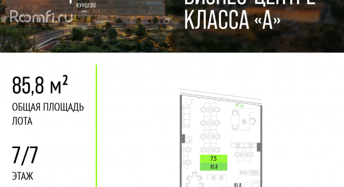 На сегодняшний день бизнес-центр распродан более чем на 70%, но в наличии есть имиджевые офисы нового поколения от 79 м² до возможности приобрести целый этаж. До 31.12.2025 года действует скидка 7% на готовые офисы. Рассрочка от застройщика, ПВ 30%