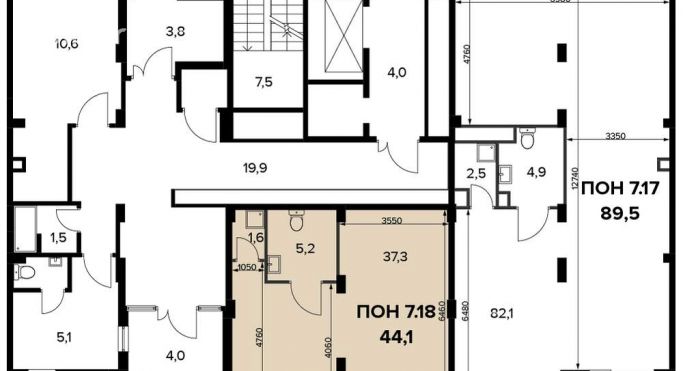 - Площадь 44.1 м²