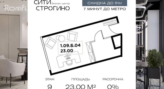 СКИДКИ ДО 10% + РАССРОЧКА ДО 12 МЕСЯЦЕВ НА ИЗБРАННЫЕ ЛОТЫ ДО КОНЦА МАРТА. В продаже от застройщика комфортабельный Home-офис площадью 23 м на 9 этаже в премиальном бизнес-центре Сити Строгино. Срок сдачи - 2028 год. Home-офис ориентирован в первую очередь на индивидуальных предпринимателей и самозанятых. В таком формате офисов удобно размещать кабинеты для оказания услуг, обучения, индивидуальных консультаций. О проекте: Сити Строгино - бизнес-центр класса А в престижном западном районе Строгино. В окружении трех парковых пространств, по-соседству с крупнейшими комплексными проектами развития территорий, в том числе кластером «СберСити». Статусное расположение создает благоприятную среду для развития бизнеса и выстраивания деловых связей. Подземный и наземный паркинг на 389 м\м. Коэффициент обеспеченности парковочными местами -1,6. Инфраструктура: В Сити Строгино будет создана собственная развитая инфраструктура для резидентов. Здесь появятся кофейня и ресторан с выходом на летнюю веранду, супермаркет и магазины. Фитнес-студия и спа-центр с панорамным бассейном, не выходя из здания. Еще одним важным элементом инфраструктуры станет конференц-зал. Кроме того, в проекте реализован отель 4 звезды с корпоративными тарифами на проживание резидентов и клинико-диагностический медицинский центр. Транспортная доступность: - 7 минут метро «Липовая Роща» (открытие в 2027 году) - 3 минуты Новорижское шоссе - 20 минут до «Москва-Сити» - 30 минут до Садового кольца - 35 минут аэропорты Внуково и Шереметьево Инженерные решения: В здании предусмотрена централизованная система кондиционирования на базе VRF-систем и приточно-вытяжная вентиляция. Энергоэффективное остекление обеспечивает комфортный микроклимат в помещении, уменьшая затраты на отопление и кондиционирование, способствуя экологичному использованию ресурсов. 21 скоростной бесшумный лифт фирмы Kleemann со временем ожидания до 45 секунд. Сервисы для резидентов: - Priority Pass для доступа ко всей инфраструктуре; - Консьерж-сервис 24/7, valet-parking, трансфер и служба доставки; - Корпоративные тарифы на проживание в отеле 4*; - Программы ДМС и медицинское сопровождение; - Цифровая экосистема с управлением в мобильном приложении; - Отдельные входные группы с индивидуальными лифтами для разных потоков.[#8101088#]