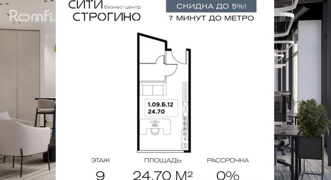 СКИДКИ ДО 10% + РАССРОЧКА ДО 12 МЕСЯЦЕВ НА ИЗБРАННЫЕ ЛОТЫ ДО КОНЦА МАРТА. В продаже от застройщика комфортабельный Home-офис площадью 24.7 м на 9 этаже в премиальном бизнес-центре Сити Строгино. Срок сдачи - 2028 год. Home-офис ориентирован в первую очередь на индивидуальных предпринимателей и самозанятых. В таком формате офисов удобно размещать кабинеты для оказания услуг, обучения, индивидуальных консультаций. О проекте: Сити Строгино - бизнес-центр класса А в престижном западном районе Строгино. В окружении трех парковых пространств, по-соседству с крупнейшими комплексными проектами развития территорий, в том числе кластером «СберСити». Статусное расположение создает благоприятную среду для развития бизнеса и выстраивания деловых связей. Подземный и наземный паркинг на 389 м\м. Коэффициент обеспеченности парковочными местами -1,6. Инфраструктура: В Сити Строгино будет создана собственная развитая инфраструктура для резидентов. Здесь появятся кофейня и ресторан с выходом на летнюю веранду, супермаркет и магазины. Фитнес-студия и спа-центр с панорамным бассейном, не выходя из здания. Еще одним важным элементом инфраструктуры станет конференц-зал. Кроме того, в проекте реализован отель 4 звезды с корпоративными тарифами на проживание резидентов и клинико-диагностический медицинский центр. Транспортная доступность: - 7 минут метро «Липовая Роща» (открытие в 2027 году) - 3 минуты Новорижское шоссе - 20 минут до «Москва-Сити» - 30 минут до Садового кольца - 35 минут аэропорты Внуково и Шереметьево Инженерные решения: В здании предусмотрена централизованная система кондиционирования на базе VRF-систем и приточно-вытяжная вентиляция. Энергоэффективное остекление обеспечивает комфортный микроклимат в помещении, уменьшая затраты на отопление и кондиционирование, способствуя экологичному использованию ресурсов. 21 скоростной бесшумный лифт фирмы Kleemann со временем ожидания до 45 секунд. Сервисы для резидентов: - Priority Pass для доступа ко всей инфраструктуре; - Консьерж-сервис 24/7, valet-parking, трансфер и служба доставки; - Корпоративные тарифы на проживание в отеле 4*; - Программы ДМС и медицинское сопровождение; - Цифровая экосистема с управлением в мобильном приложении; - Отдельные входные группы с индивидуальными лифтами для разных потоков.[#8101126#]