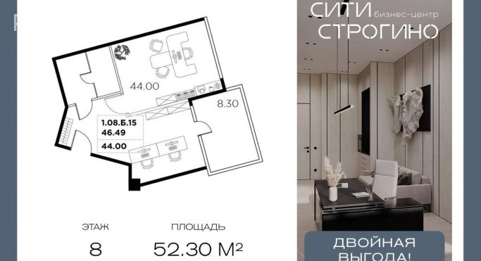 СКИДКИ ДО 10% + РАССРОЧКА ДО 12 МЕСЯЦЕВ НА ИЗБРАННЫЕ ЛОТЫ ДО КОНЦА МАРТА. В продаже от застройщика комфортабельный Home-офис площадью 52.3 м на 8 этаже в премиальном бизнес-центре Сити Строгино. Срок сдачи - 2028 год. Home-офис ориентирован в первую очередь на индивидуальных предпринимателей и самозанятых. В таком формате офисов удобно размещать кабинеты для оказания услуг, обучения, индивидуальных консультаций. О проекте: Сити Строгино - бизнес-центр класса А в престижном западном районе Строгино. В окружении трех парковых пространств, по-соседству с крупнейшими комплексными проектами развития территорий, в том числе кластером «СберСити». Статусное расположение создает благоприятную среду для развития бизнеса и выстраивания деловых связей. Подземный и наземный паркинг на 389 м\м. Коэффициент обеспеченности парковочными местами -1,6. Инфраструктура: В Сити Строгино будет создана собственная развитая инфраструктура для резидентов. Здесь появятся кофейня и ресторан с выходом на летнюю веранду, супермаркет и магазины. Фитнес-студия и спа-центр с панорамным бассейном, не выходя из здания. Еще одним важным элементом инфраструктуры станет конференц-зал. Кроме того, в проекте реализован отель 4 звезды с корпоративными тарифами на проживание резидентов и клинико-диагностический медицинский центр. Транспортная доступность: - 7 минут метро «Липовая Роща» (открытие в 2027 году) - 3 минуты Новорижское шоссе - 20 минут до «Москва-Сити» - 30 минут до Садового кольца - 35 минут аэропорты Внуково и Шереметьево Инженерные решения: В здании предусмотрена централизованная система кондиционирования на базе VRF-систем и приточно-вытяжная вентиляция. Энергоэффективное остекление обеспечивает комфортный микроклимат в помещении, уменьшая затраты на отопление и кондиционирование, способствуя экологичному использованию ресурсов. 21 скоростной бесшумный лифт фирмы Kleemann со временем ожидания до 45 секунд. Сервисы для резидентов: - Priority Pass для доступа ко всей инфраструктуре; - Консьерж-сервис 24/7, valet-parking, трансфер и служба доставки; - Корпоративные тарифы на проживание в отеле 4*; - Программы ДМС и медицинское сопровождение; - Цифровая экосистема с управлением в мобильном приложении; - Отдельные входные группы с индивидуальными лифтами для разных потоков.[#8101174#]