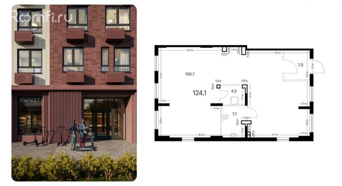 - Площадь 124.1 м²