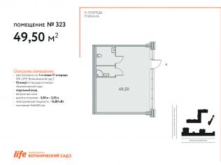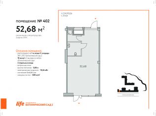 Помещение с отдельным входом. Продажа нежилого помещения от застройщика площадью 42,3 кв.м, расположенного на 3 этаже в стилобатной части легендарного дома «МАЛЕВИЧ» по адресу: улица Отрадная, вл.
