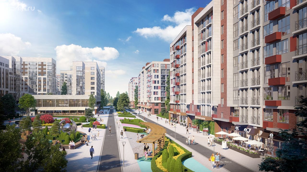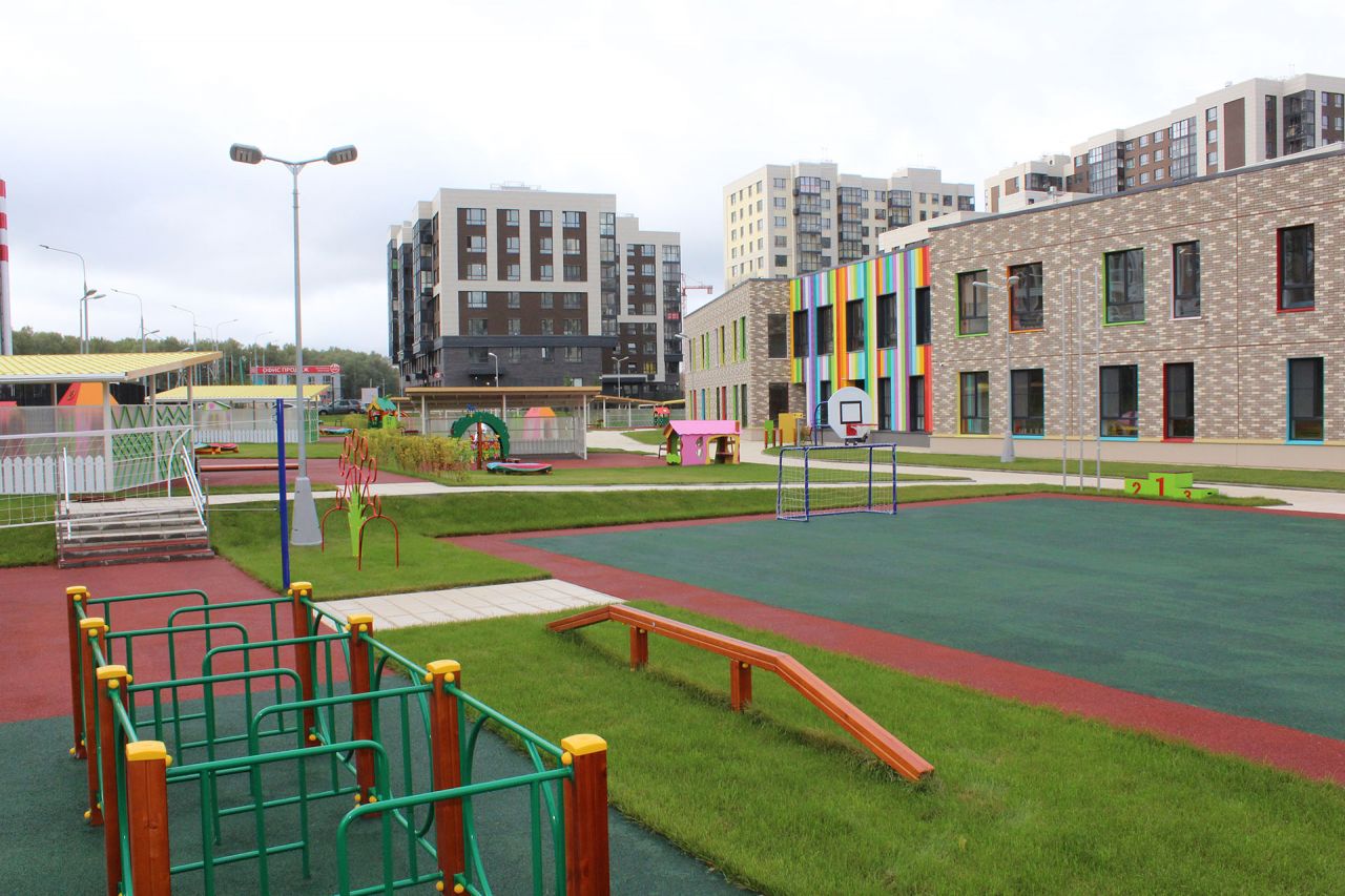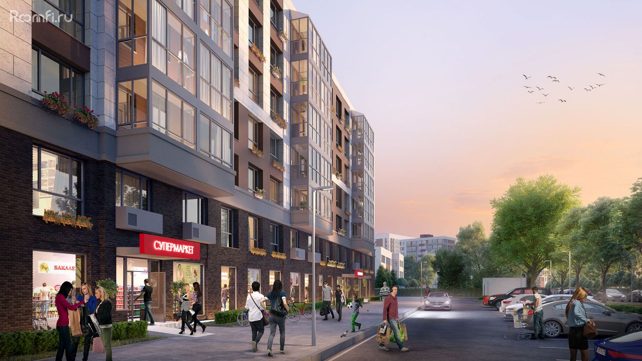 - Инфраструктура школы, детские сады, детские площадки, супермаркеты и магазины у дома, пекарни и кафе, ресторан с эксплуатируемой кровлей, поликлиника, фитнес-комплекс с бассейном